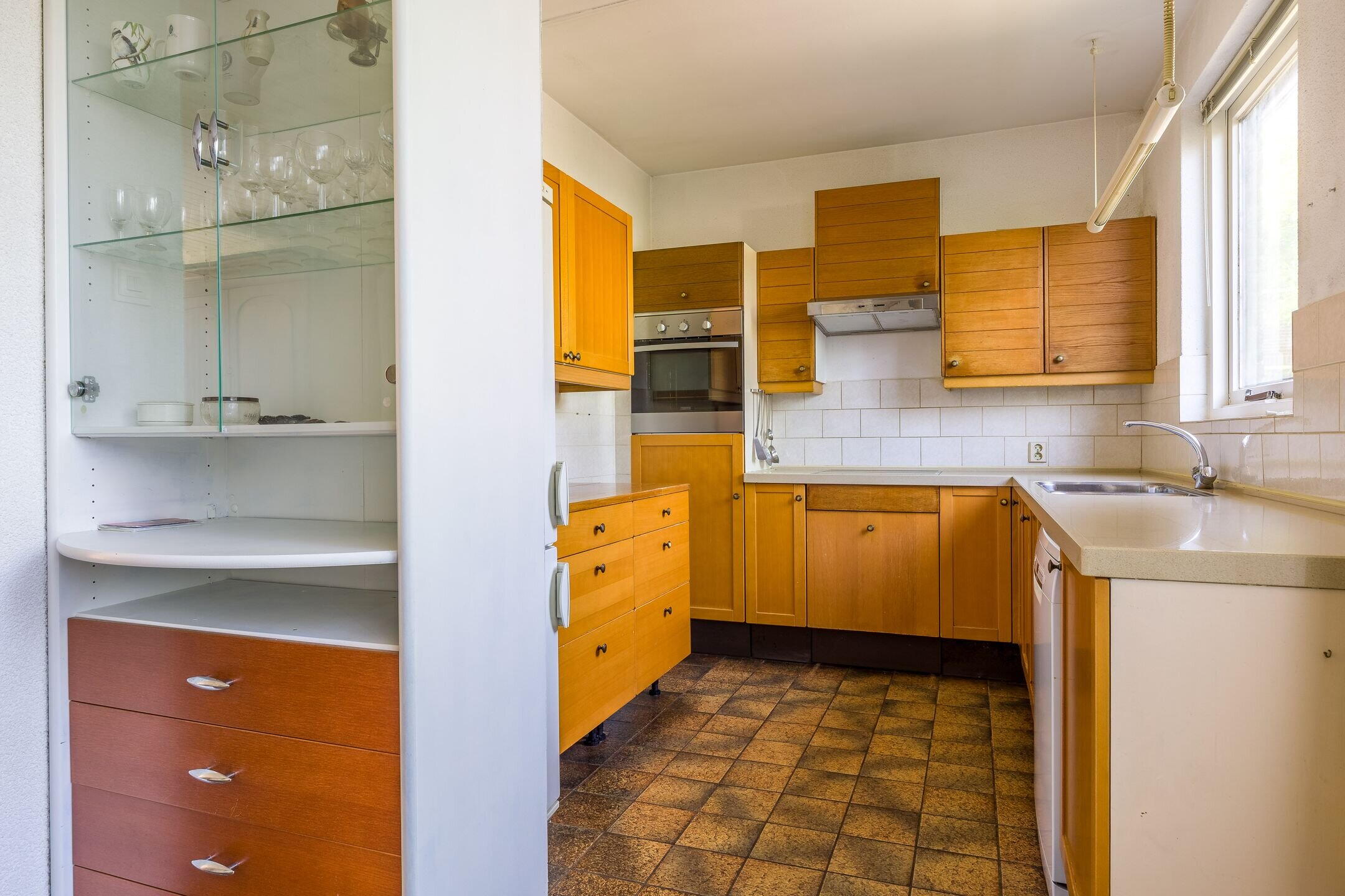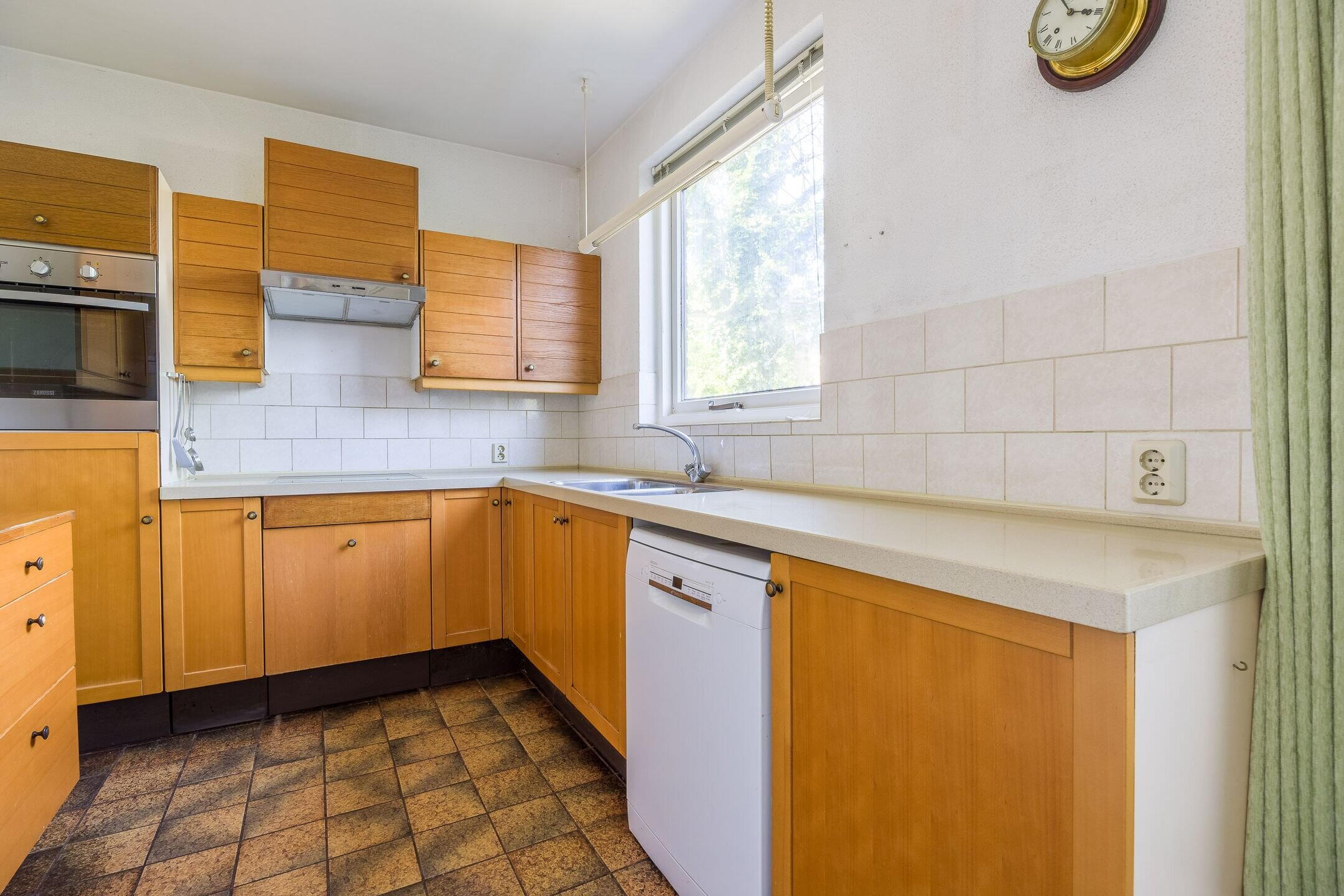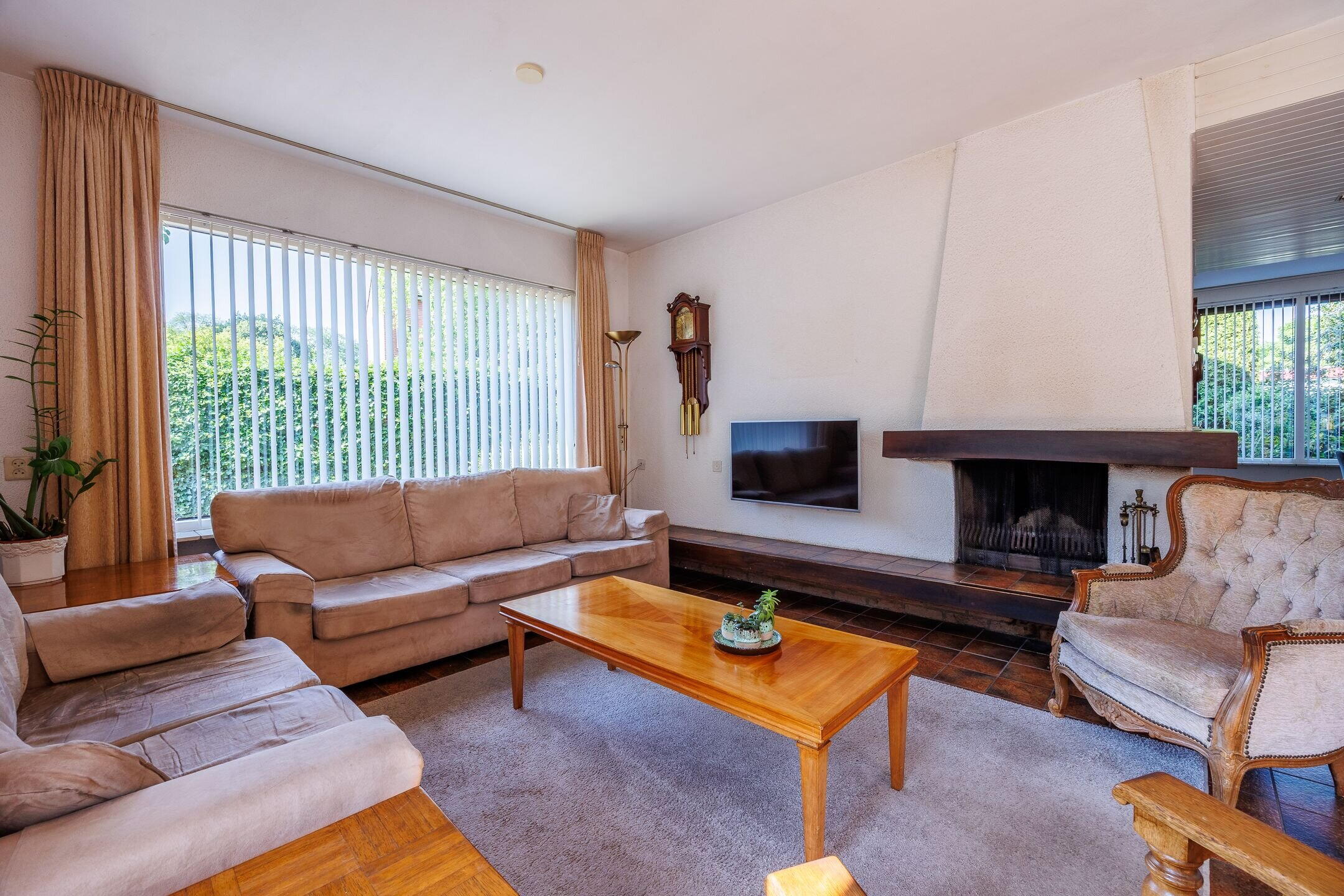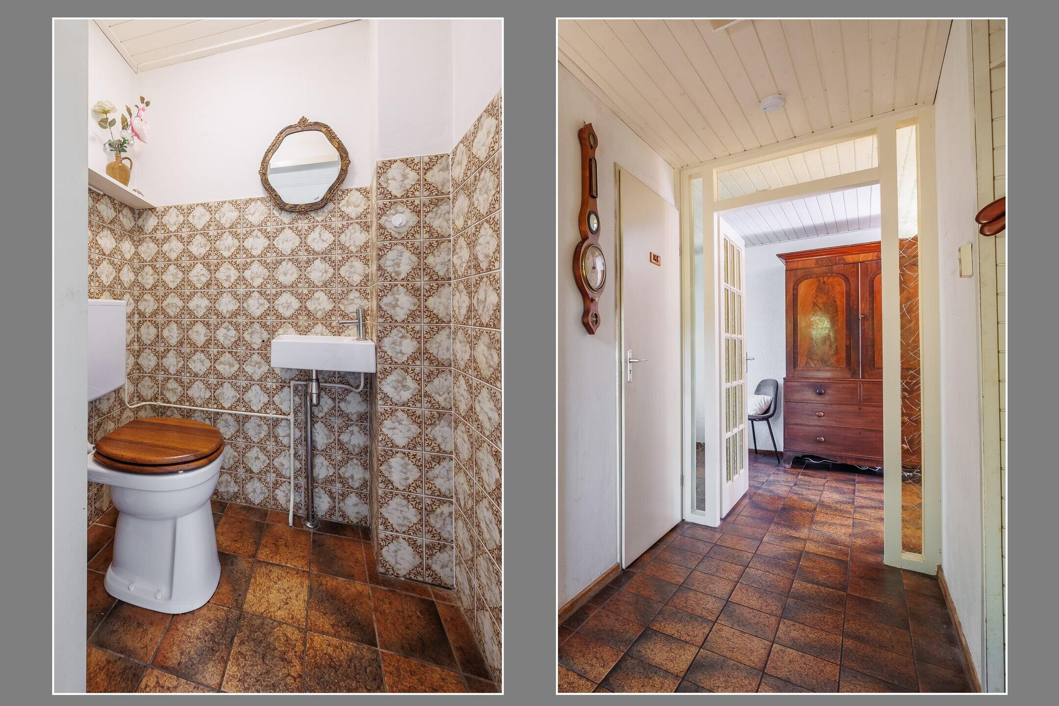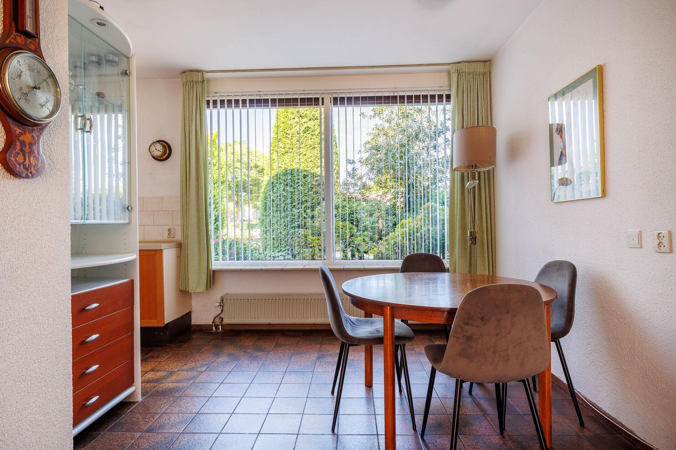 De achtertuin biedt veel privacy door de volgroeide bomen aan de achterzijde en is ingericht met meerdere beschutte zitjes. Dankzij de gunstige indeling zijn er zowel zonnige als schaduwrijke plekjes te vinden. De lange oprit naast de woning leidt naar een ruime garage met plek voor een auto én extra werkruimte, zoals een werkbank.