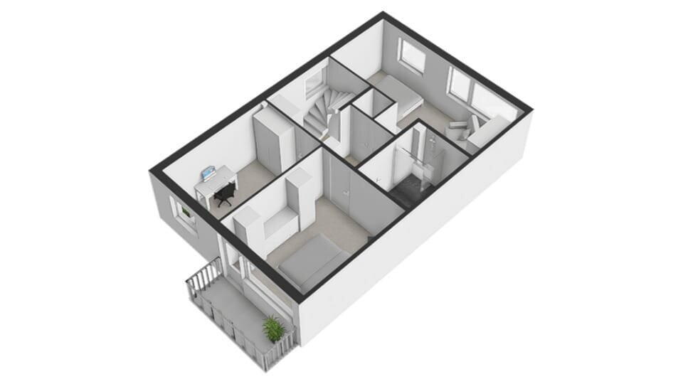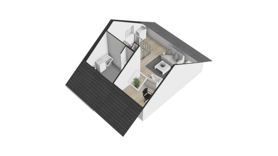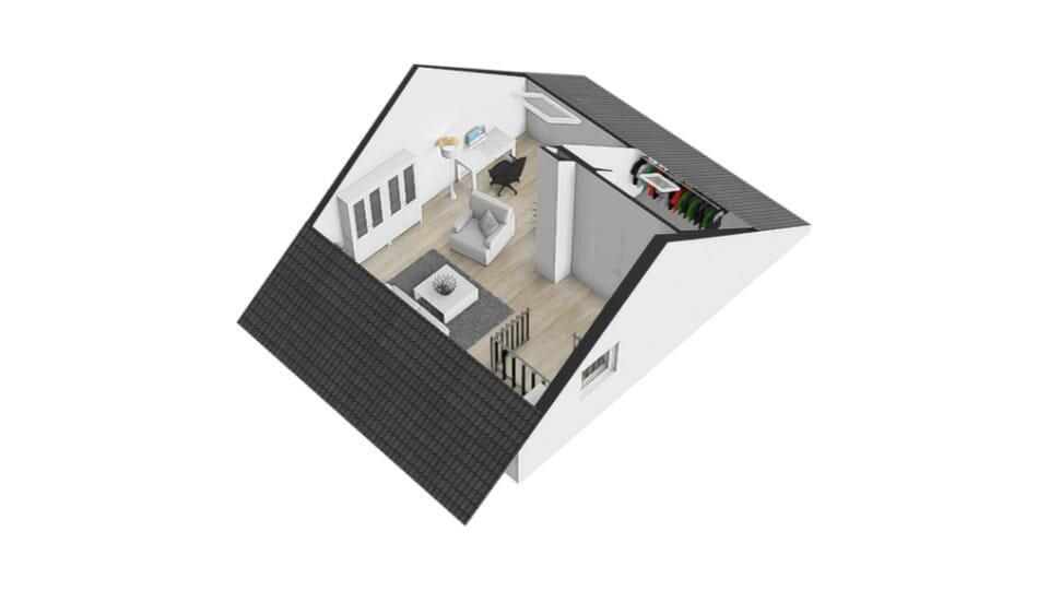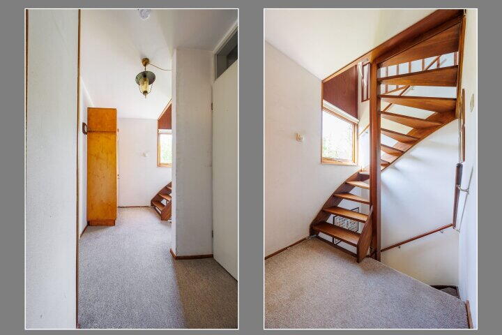 Vaste trap naar de ruime zolderverdieping met aansluitingen voor wasmachine / droger. De zolder is voorzien van twee dakramen en biedt diverse mogelijkheden voor het creëren van een extra kamer of werkruimte. Ook zijn er mogelijkheden voor dakkapel(len).
